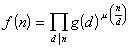 g(n)称为f(n)的乘积麦比乌斯变换,f(n)称为g(n)的乘积麦比乌斯逆变换.